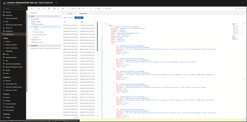 6. That’s it! Easy peasy! No line of code! You have all your events flowing into your Cosmos DB.